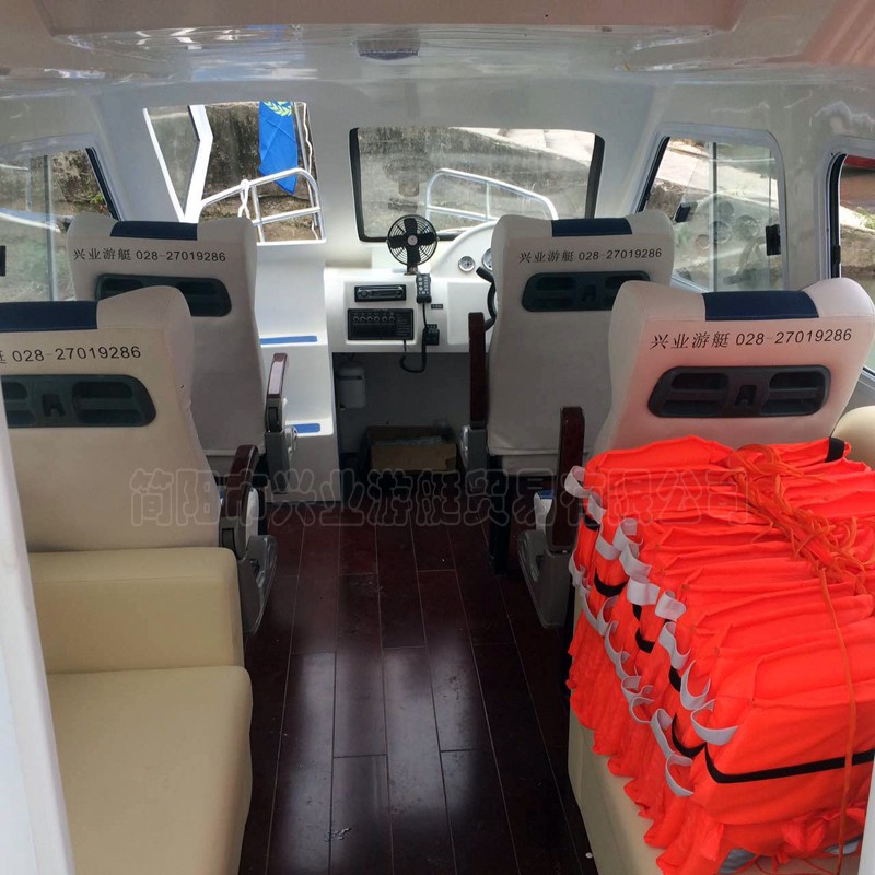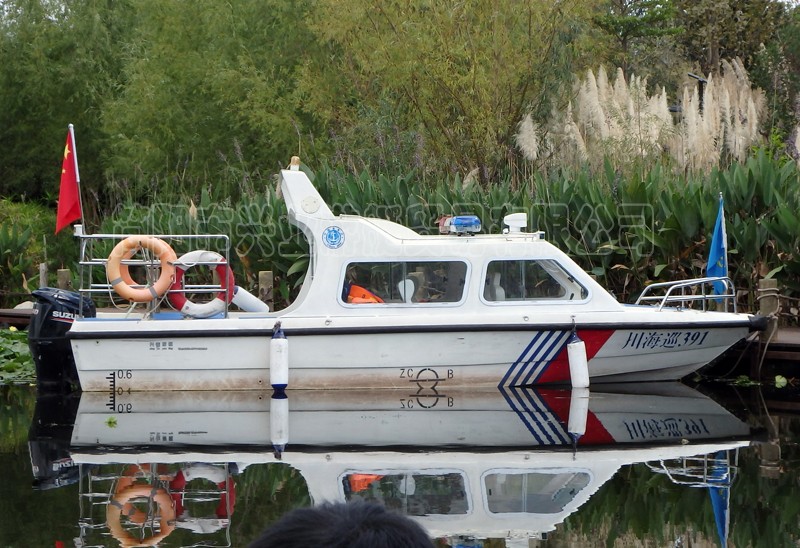 本艇殼板采用玻璃鋼陰模成型,表面層為彩色膠衣樹脂,具有美觀、耐腐蝕,保養(yǎng)費用低等 諸多優(yōu)點,可廣泛作為公務(wù)執(zhí)法、水上交通、旅游觀光等方面使用。