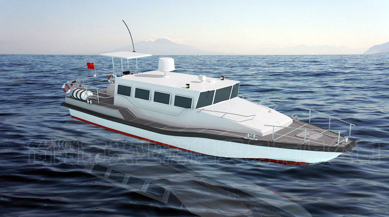 本艇為單底、單甲板、混合骨架式結(jié)構(gòu);雙機(jī)雙槳,柴油機(jī)動力驅(qū)動的折角型玻璃鋼快艇,船體及上層建筑均采用玻璃纖維增強(qiáng)塑料制造。本艇線型流暢,操作靈活,是一款優(yōu)良的船型,主要用于高海況用途的高速船舶。